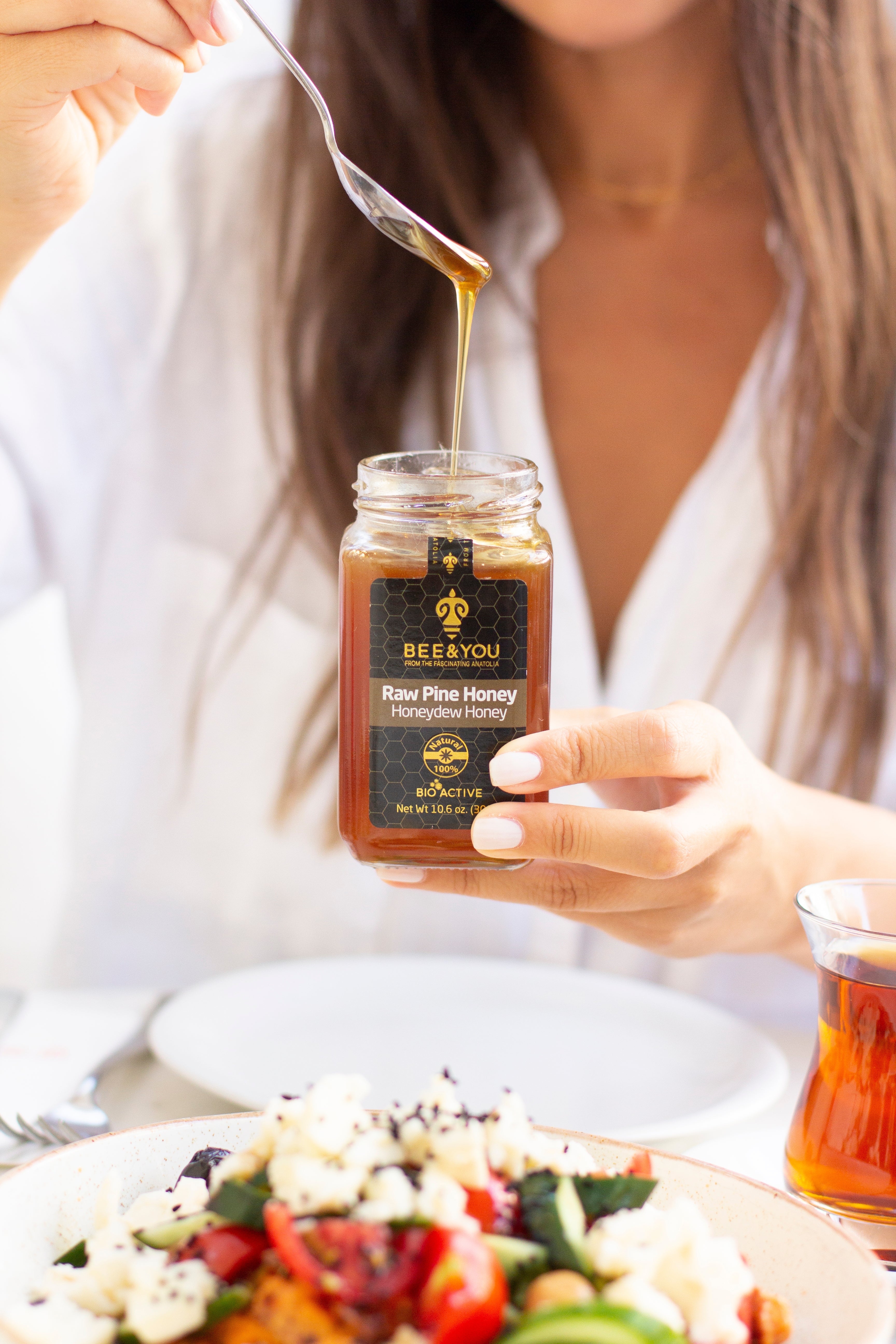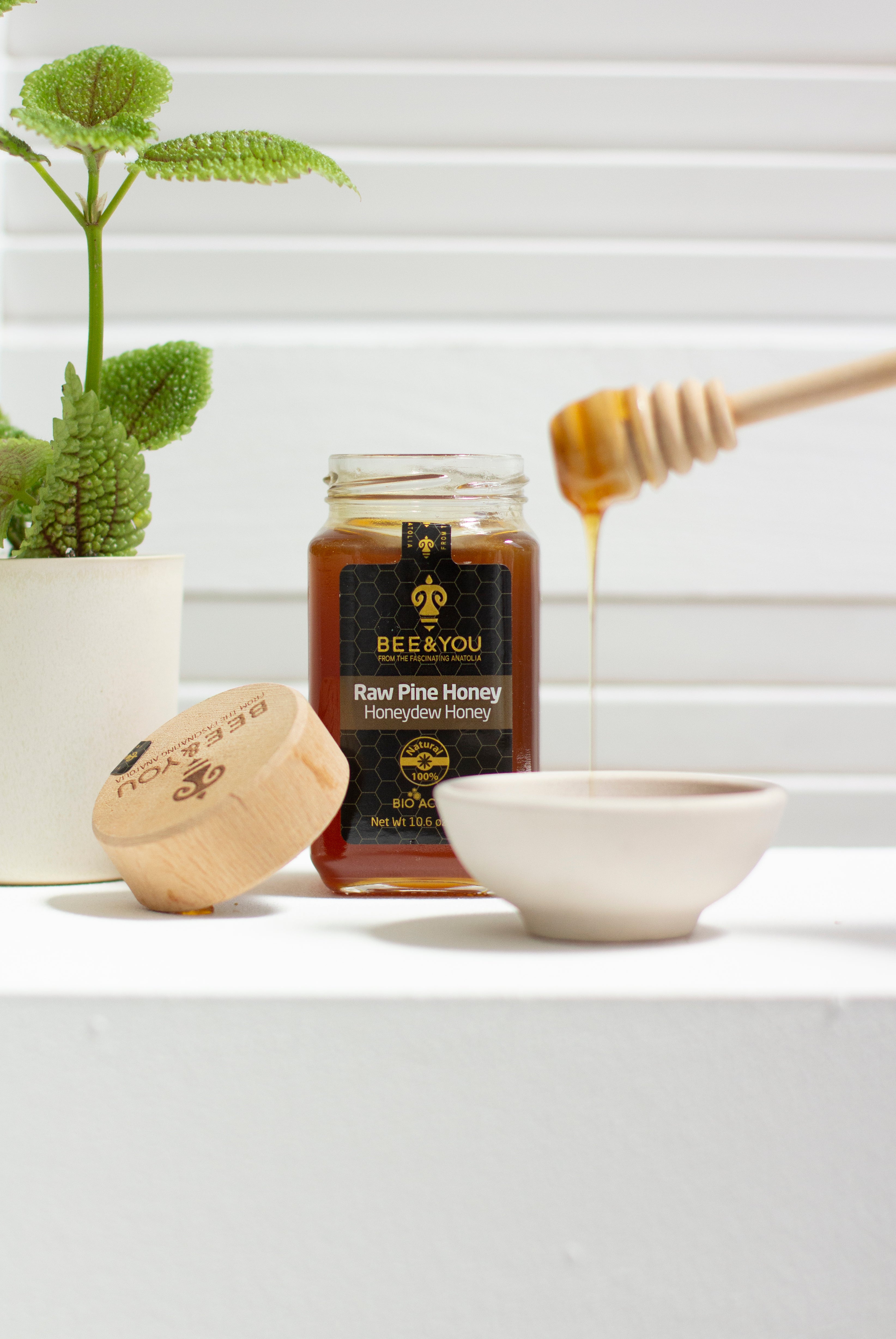 優れた栄養価の高いエネルギー源のハチミツ。私たちのハチミツは2種類あります。『パインローハニー(松林から採取)』は松の木の蜜をミツバチが集めたもので、エーゲ海沿いの人気リゾート地「マルマリス」産の本品です。