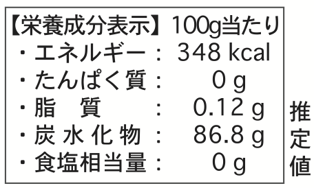 348 kcal 0 g 0.12 g 86.8 g 0 g |